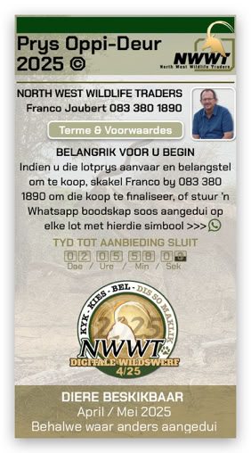 Ons het die elektroniese wildsaanbieding met die "Prys Oppi-Deur" konsep geskep. Dit 'n baie groot omwenteling in die wildbedryf beteken, want dit werk so maklik …